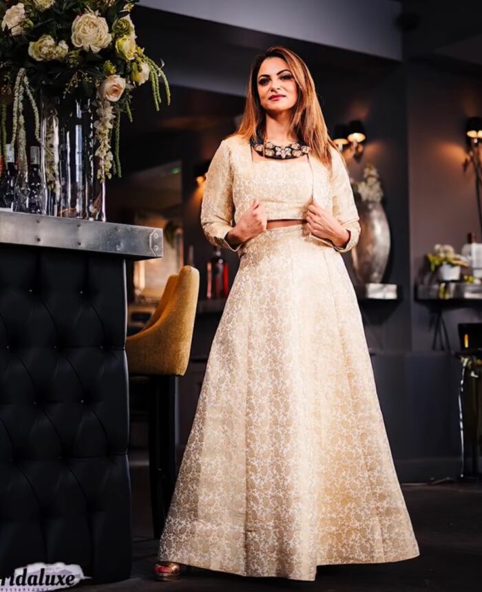 Cream banarasi skirt with top and jacket