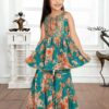 Faux Georgette Sharara and top with dupatta with embroidery chain work