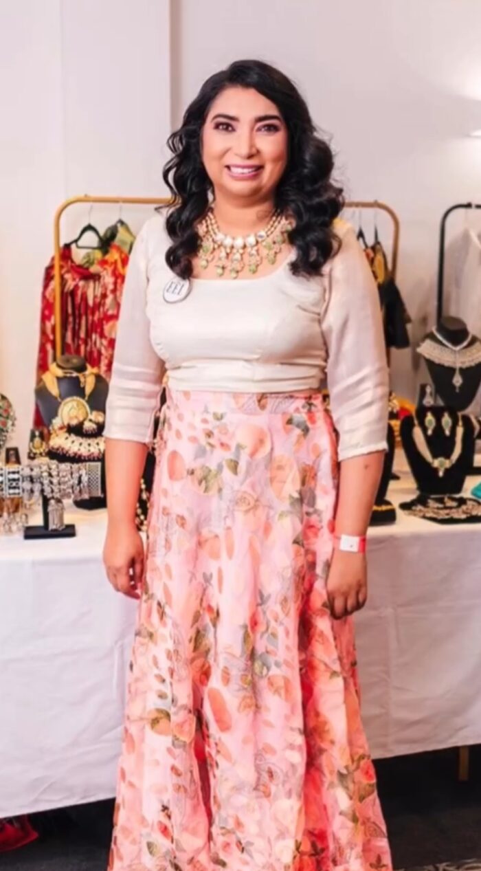 Floral organza printed skirt and cream shimmer top