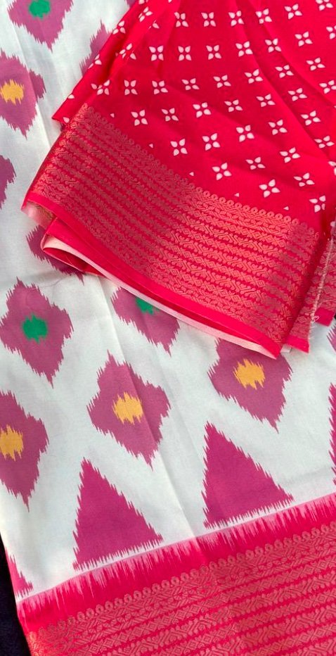 Ikkat printed handloom soft silk saree