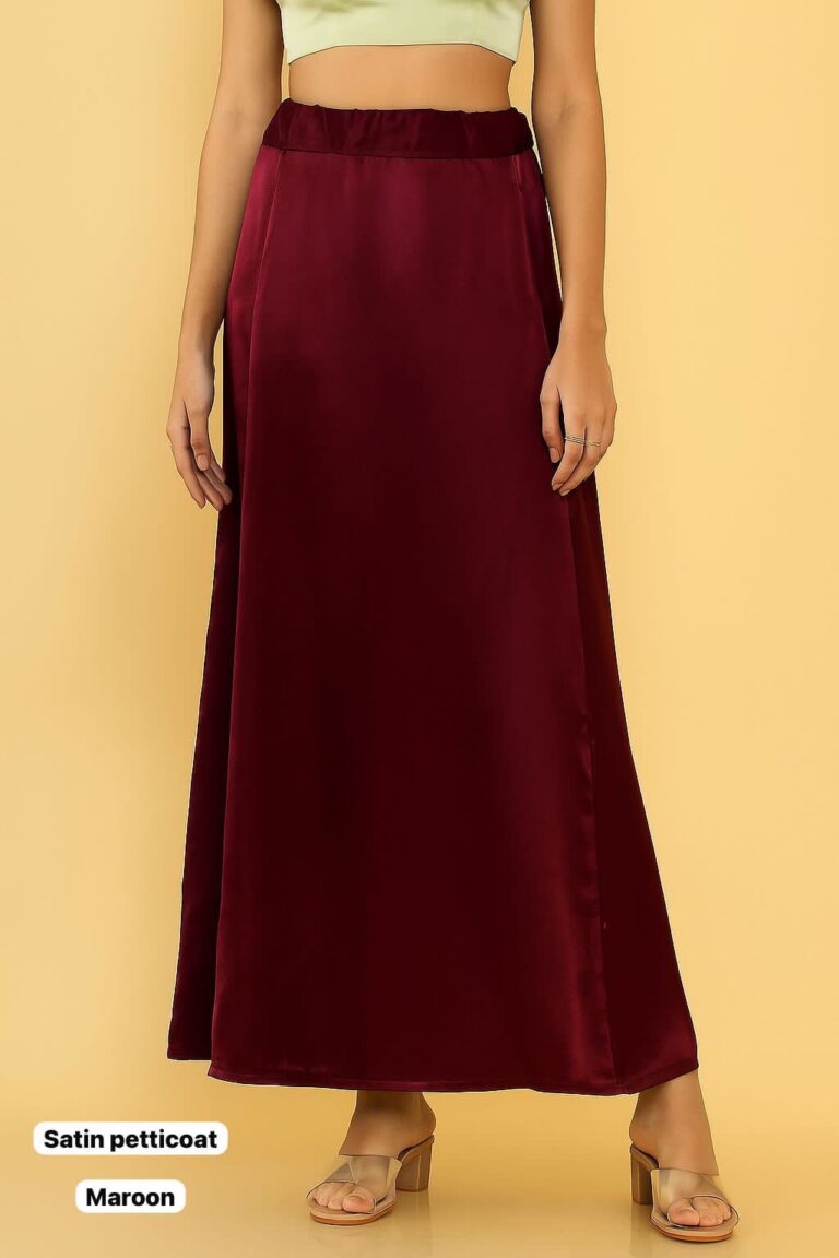 Maroon Women’s Satin Petticoat Saree Satin Underskirt Sari