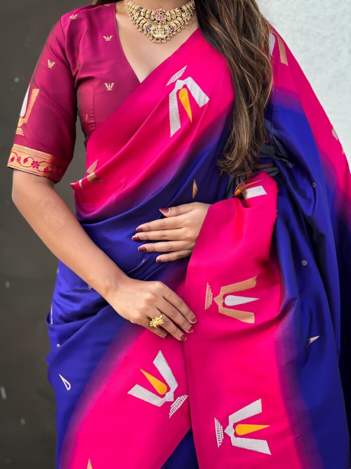 Soft silk saree with tilak meenakari weaves