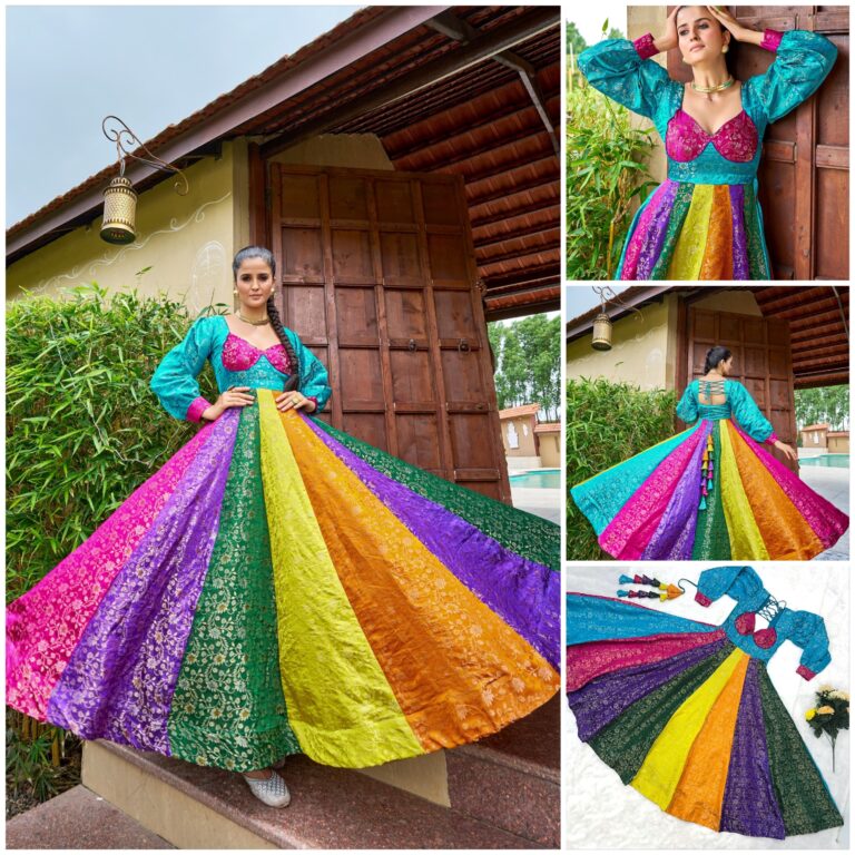 Dazzle in our stunning multi-color 12 Kali Anarkali gown! Full flair design & vibrant hues create a dramatic effect, perfect for garba nights & glamorous look! 💃*
